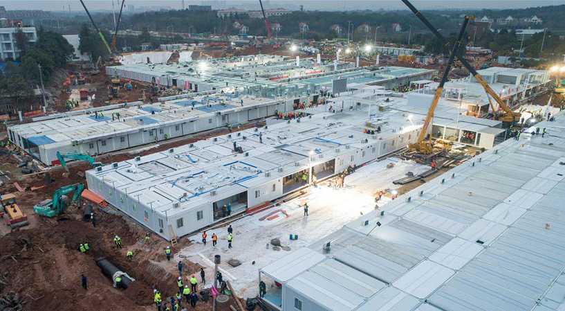 完工倒计时:火神山基础施工全部完成,开始医疗配套设备安装。